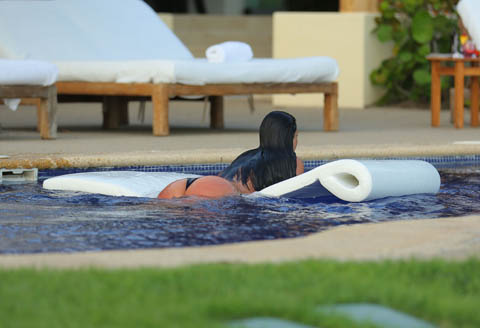 Düzgün fiziği ve yaptığı kaslarla objektiflere takılan 33 yaşındaki Kardashian, havuz kenarında böyle keyif yaptı.