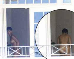 Balkon kapısı açık olan Rihanna paparazzilerin kendisini fotoğrafladığını gördü. Ancak hiç bu duruma aldırmadan bikinisi değiştirmek için tamamen soyundu.