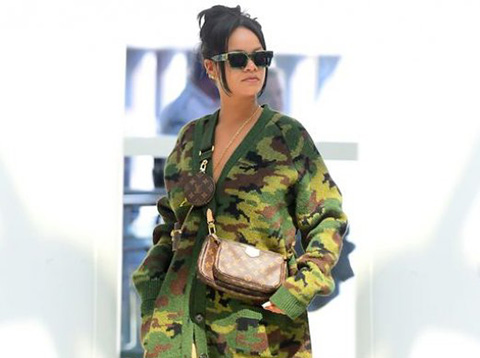 Üzerinde sadece kamuflaj desenli bir hırka giyip dışarı çıkan Rihanna'yı görenler, "komando olmuş" yorumu yaptı.
