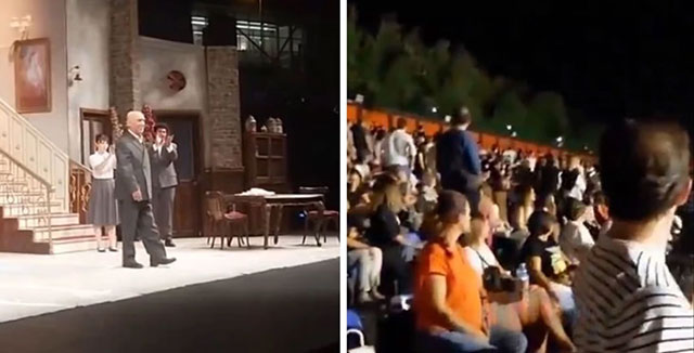 Gazeteci İsmail Arı sosyal medya hesabından yaptığı paylaşımda saldırı nedeniyle büyük bir panik yaşandığını ve oyuna ara verildiğini ifade etti. Yaşanan korku dolu anların ardından Şener Şen'in kararlı tutumuyla oyun tamamlandı. Eski Adalet Bakanı Abdulhamit Gül ve eşinin de tiyatro gösterisini izleyenler arasında olduğu öğrenildi.