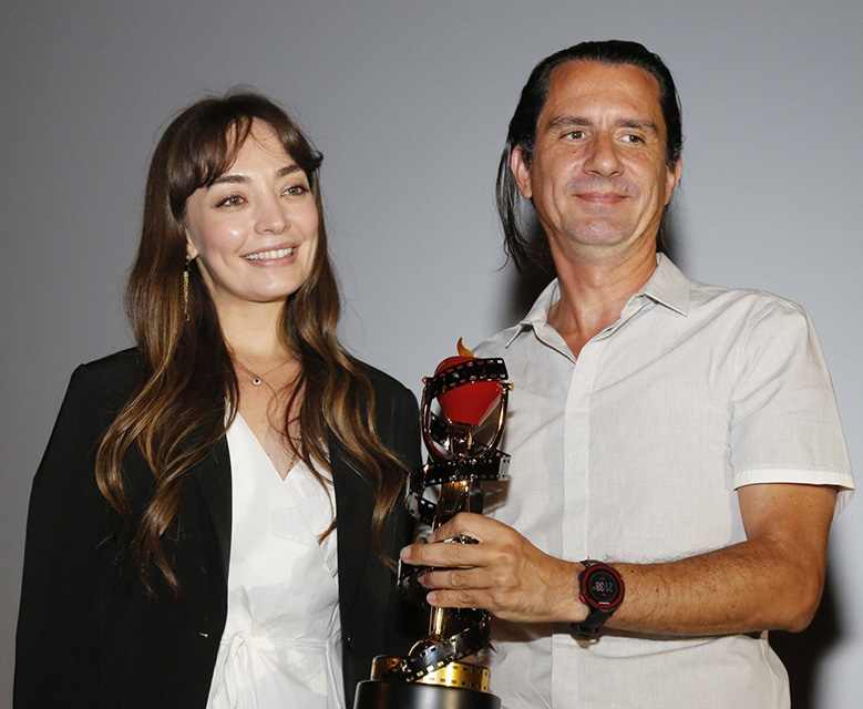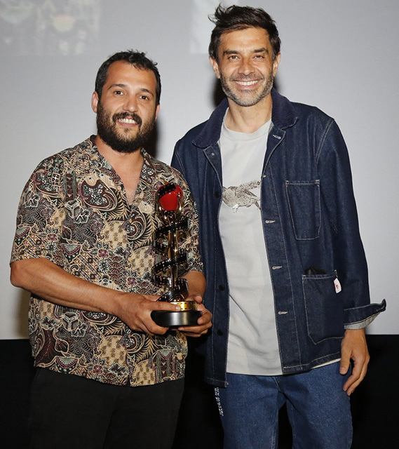 Bu yıl “Sesini Yükselt!” temasıyla başlayan festivalde en iyi film ödülünü kazanan “Okul Traşı” filminin yönetmeni Ferit Karahan ödülünü festival başkanı Hüseyin Sıtkı’dan aldı.