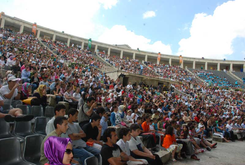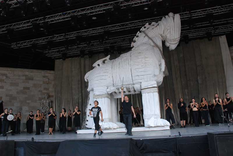 Harbiye Açıkhava Tiyatrosunu dolduran binlerce öğrenci, Mustafa Erdoğan'ın anlatımıyla `Troya Efsanesi' hakkında bilgiler edinip, `Troya' gösterisini izlediler.