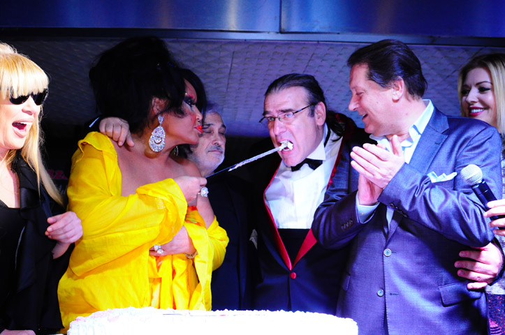 Magazinkolik 5.Yıl Partisinde ışık gösterisi altında pastayı Bülent Ersoy keserken geceye katılan ünlü sanatçılar sahneye çıkarak birbirlerine pasta ikram ettiler?Diva Bülent Ersoy