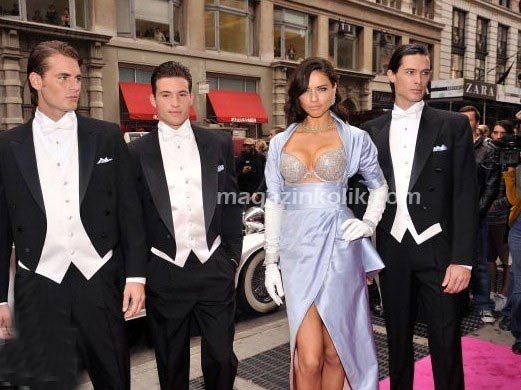 Beyaz bir limosin ve simokinli bodyguardların eşliğinde showruma gelen Adriana'nın gögüsleri sütyenden çok dikkat çekti...