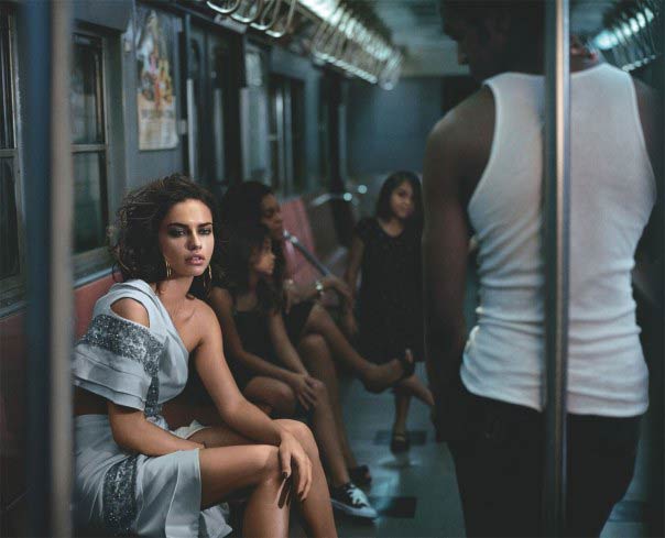 Metroda yapılan çekimlerde Adriana Lima sadece iç çamaşırı giydi.