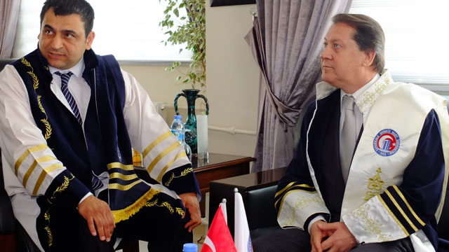 Daha sonra Özhan'a, Laçiner tarafından cübbe giydirilerek, "fahri doktora beratı" ile üniversite kimliği takdim edildi.