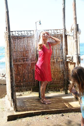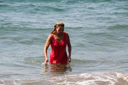 Ahu Tuğba, Victoria's Beach'te serin suların cazibesine kapılsa da tedbiri elden bırakmadı. Habercilere "2000 yaşındayım, siz buradayken bikiniyle denize girmem" diyerek elbisesiyle denize daldı. Güney ise onu kıyıdan izlemekle yetindi. Duşa bile elbisesiyle giren oyuncu, Amerika'dan yeni döndüğünü, yaz sonuna kadar Bodrum'da kalacağını söyledi.