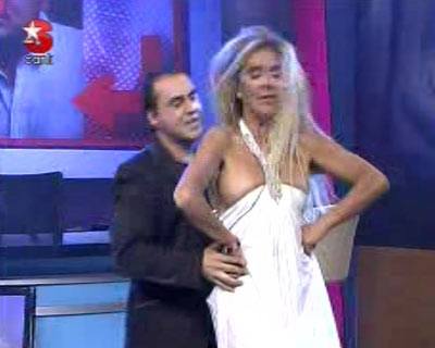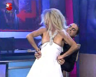 Canlı yayında dekolde kazası! Ahu Tuğba, Arto`ya eşlik etmek isterken göğüs dekolteli elbisesinin azizliğine uğradı.--->Frikik anının VİDEOsunu izlemek ve FOTOĞRAFlarını görmek için TIKLAYINIZ?