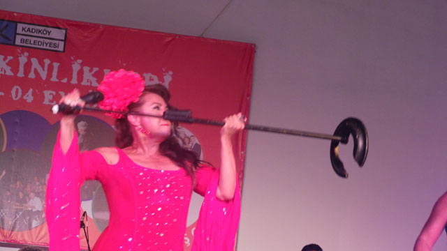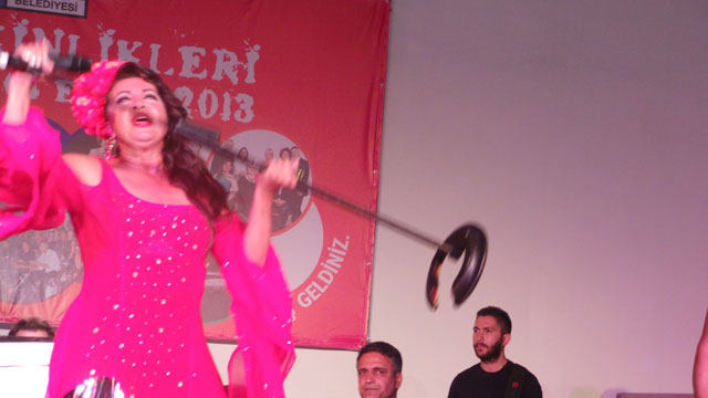 Semiha bol bol göbek arttı. Zilleri takıp geceyi izlemek üzere özel olarak gelen Kadıköy Belediye Başkanı Selami Öztürk ' ün yanına bile gitti.