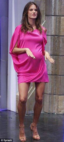 7 aylık hamile olan Victoria's Secret'in ünlü meleği Alessandra Ambrosio, İspanya ziyareti sırasında Madrid'te El Hormihuero adlı bir televizyon programına katıldı.