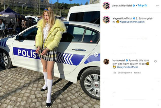 Aleyna Tilki'nin paylaşımına annesi Havva Öztel ise "Ay rolde bile kötü içim gitti kızım ağlarım ki ben" yorumunu yaptı.