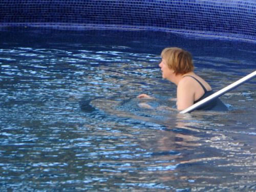 Paskalya tatilini kocası Joachim Sauer ile birlikte, önceki yıllarda olduğu gibi İtalya'da geçiren Almanya Başbakanı Angela Merkel, havuzda yüzerken görüntülendi.
