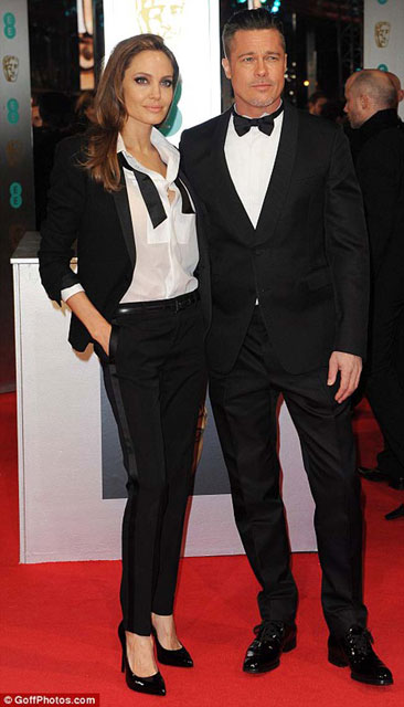BAFTA ödül töreni'nden en dikkat çeken çift Angelina Jolie ve Brad Pitt oldu. Çocukları ile beraber İngiltere'ye gelen Angelina'yı Brad Pitt hava alanında kaşıladı ve sevgililer günü beraber geçirdikten sonra ödül töreni için İngiltere'de kaldılar.. Çiftin birbirine uyumlu kıyafeti ise gecenin en çok konuşulan detaylarından birisiydi..