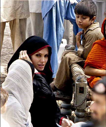 Pakistan'ın kuzeybatısında sel mağdurlarıyla bir araya gelen BM'nin iyiniyet elçisi Jolie, tarihinin en kötü doğal afetiyle karşı karşıya kalan ülkenin yaralarını sarması için uluslararası topluma yardım çağrısında bulundu.