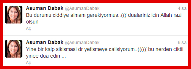 Daha evvel yaşadığı rahatsızlık nükseden Dabak "Yine bir kalp sıkışması dr yetismeye calisiyorum..((((( bu nerden ciktii yinee dua edin ..." yazdı.
