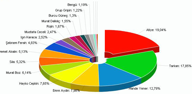 Yaklaşık 1 aydır süren "2011 Eurovision`da ülkemizi kim temsil etsin?" adlı anketimizde 93.900 gibi rekor düzeyde oy kullanıldı ve birinciliği 17.880 oy alan (%19.04) Atiye kazandı?