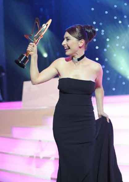 Ayça Bingöl, "En iyi kadın oyuncu" ödülünü kucakladığı 38. Altın Kelebek TV Yıldızları ödül töreninde şıklığı ve takılarıyla göz kamaştırdı.