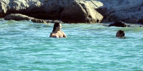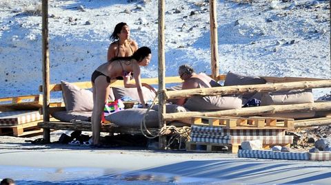 Altı siyah üstü renkli bikinisi ile kardeşinin yanından ayrılmayan Azra Akın'ın yanında bir Kıvanç Tatlıtuğ eksik.
