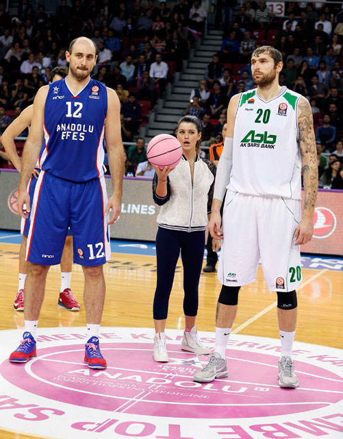 Anadolu Sağlık Merkezi ile işbirliği yapan Anadolu Efes Spor Kulübü'nün Unics Kazan ile oynadığı sezonun ilk Euroleague maçı, ünlü oyuncu Beren Saat'in pembe topla gerçekleştirdiği hava atışıyla başladı.