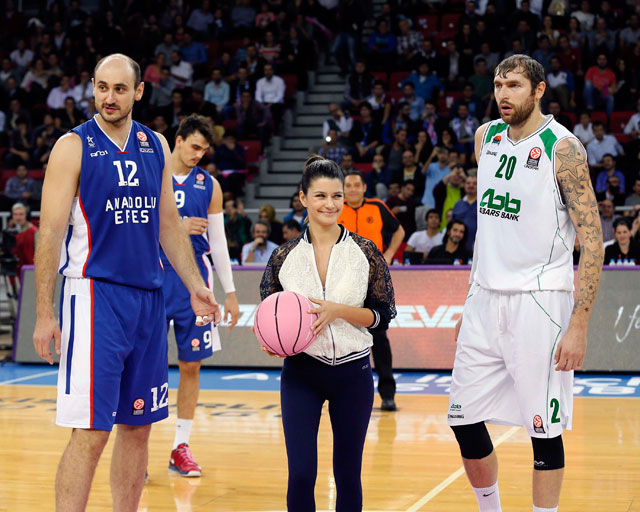 Anadolu Efes Spor Kulübü'nün Unics Kazan ile karşılaştığı sezonun ilk Euroleague maçının başlangıcı olan Pembe Top hava atışını ünlü oyuncu Beren Saat yaptı.