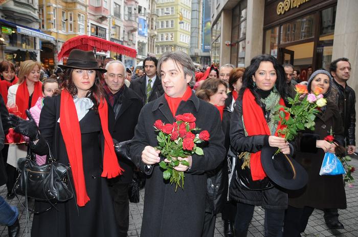 Soğuk ve yağmurlu havaya rağmen Beyoğlu Belediye Başkanı Ahmet Misbah Demircan ile birlikte buluşan, sanatçılar ve vatandaşlar hep birlikte şarkılarla Galatasaray Lisesi'nden Tünel Meydanı'na kadar yürüdüler. Yürüyüşte Başkanın yanında yer alan, Seda Üren, Sibel Bilgiç, Selin Boronkay, Ekin, Eda Güngör ,'Tüm Oylarımız Beyoğlunu Beyoğlu yapan Başkanımıza' mesajını verdiler.
