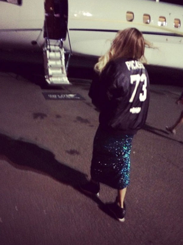 Performans öncesi jetinin içinde ve daha sonra konser sonrası üzerindeki old school mont ve şık elbisesinin altına giydiği sneakers tarzı ayakkabıları ile uçağa binerken görüntülenen Beyonce'nin bir gece eşinin özel jetinde konakladıktan sonra bugün sabah saatlerinde Amerika'ya uçtuğu belirtildi.