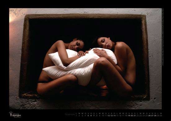 Facebook 'taki üyeleri arasından seçtiği iki kadın Mara ve Rosa 'nın çıplak resimleri ile hazırlanan takvim lezbiyen ilişkiyi yansıtıyor?