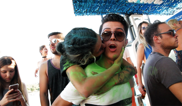 Öte yandan Aya Yorgi Kafepi'ye gelenler bir yandan boya savaşının tadını çıkarırken bir yandan da Happy Hour’da DJ İlkan eren'in müzikleriyle doyasıya eğlendi.