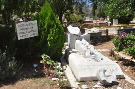 Türk edebiyatının usta şairi Can Yücel'in Muğla'nın Datça İlçesi'ndeki mezarı, kimliği belirsiz kişi ya da kişilerin saldırısına uğradı.