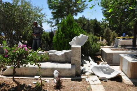 Tüm dünyada 'hoşgörü mezarlığı' olarak bilinen Datça Mezarlığı'nda Müslüman kabirlerinin yanı sıra Hıristiyan ve Yahudi kabirlerinin bulunduğunu hatırlatanlar, olaya sert tepki gösterdi.