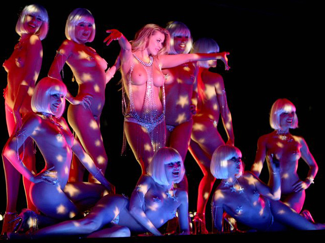 Las Vegas'taki bir gece klübünde Crazyhorse'un muhteşem danscılarıyla çıplak pozlar veren Carmen Electra'nın tek eksiği kısaboyuydu..