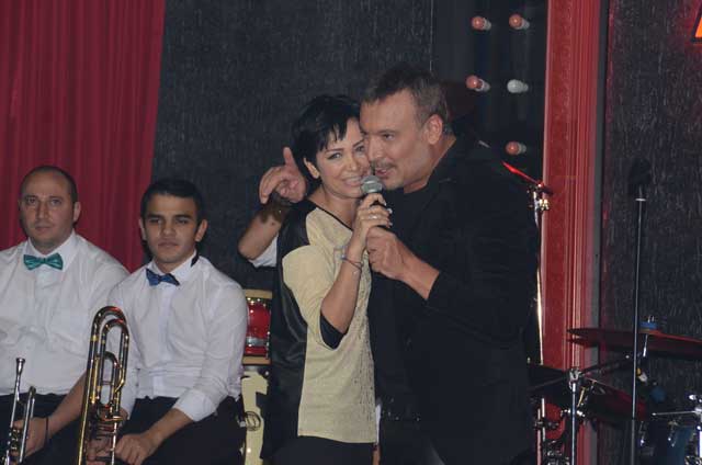 Hareketli parçalarda sık sık sahneye fırlayan Çağlayan, Cenk Eren'le birlikte karşılıklı göbek attı.