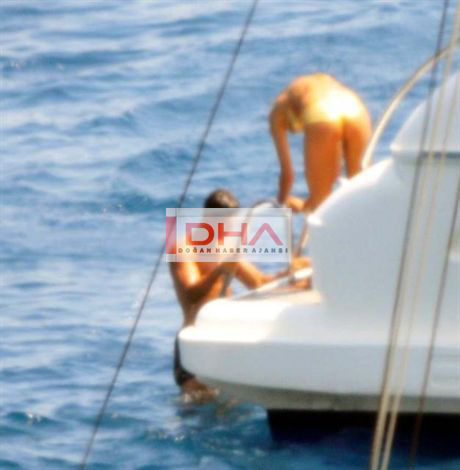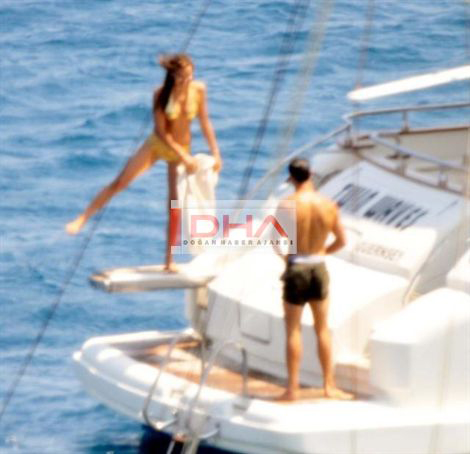 Dünyaca ünlü futbolcu Ronalda bugün öğleden sonra, kaldığı Kempinszi Barbaros Bay Hotel'den Twin Waves adlı 20 metrelik lüks yat ile Gökova koylarına açıldı. Tekne ile Orak Adası, Kara Ada Haremtan Koyu ve Akvaryum koylarını gezen Ronaldo, Rus manken sevgilisi 25 yaşındaki Irina Shayk ile bol bol denize girip güneşlendi. Ronaldo lüks yatın arkasında sevgilisiyle birbirlerini ıslatıp eğlenirken, teknenin burun kısmında birbirlerine güneş yağı sürüp güneşlendi. Ronaldo ve sevgilisi Shayk'ın lüks yatın ön kısmına güneşlendikleri sırada samimi görüntüleri DHA objektiflerine takıldı. Shayk'ın ten rengi bikini giydiği görüldü. Mavi yolculuğa çıkan ve sevgilisi ile tekne üzerinde saatlerce vakit geçiren Ronaldo'nun sevgilisi ile birbirinden samimi hareketlerini gören hayranları ise el sallayıp çifti selamladı. Ronaldo ve sevgilisi tekne üzerinde meyve yiyerek tatilin tadını çıkardı. Ronaldo Gökova koylarında yaklaşık 6 saat gezdikten sonra kaldığı otele geri döndü.