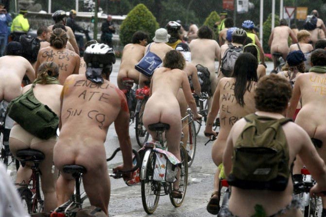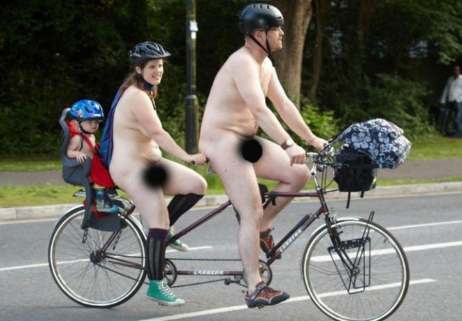 Çoluk,çocuk genç yaşlı çıplak bisikletçiler Hyde Park'ta buluşarak tepkilerini ortaya koydular...