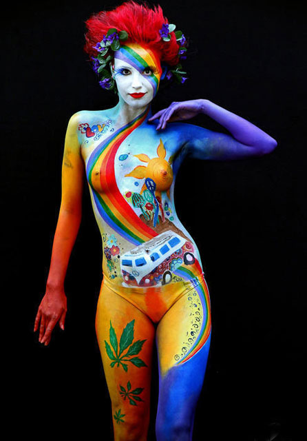 Çıplak vucutlara yağlıboya festivalinde rengarenk görüntüler..