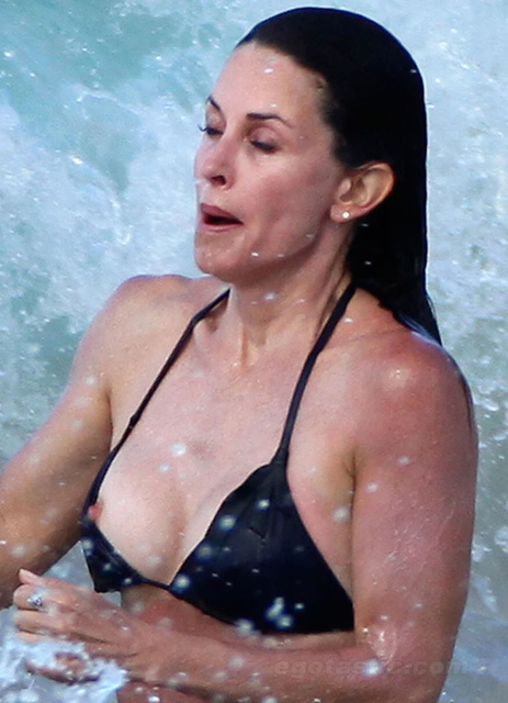 Courteney Cox... DALGALARIN AZİZLİĞİNE UĞRADI, GÖĞÜSLERİ AÇILDI...
