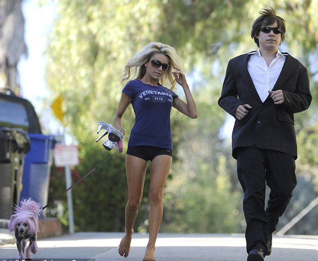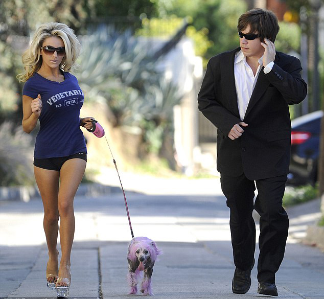 Paparazzi tarafından cekilen fotoğraflar da bu sefer Amerikalı şarkıcının yanında kocası yerine koruması görünüyor. Çılgın manken, koşu esnasında arada bir saçlarınla oynayıp seksi pozlar vererek spor değil sanki strip şovu yapmakta. Kısa bir sure sonra doğal olarak yorulup koşmaya çıplak ayakla devam ediyor.