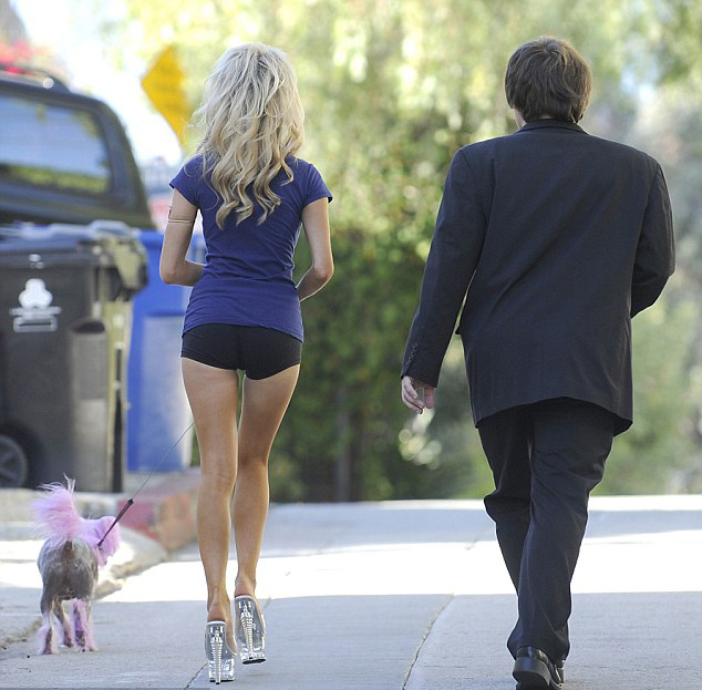 Ayağından hiç cıkarmadağı topuklu perspex ayakkabıları ve poposuna yapışık minicik şortuyla koşmaya çalışan seksi sarışın her zaman olduğu gibi tüm dikkatleri üzerine çekmeyi başarıyor.