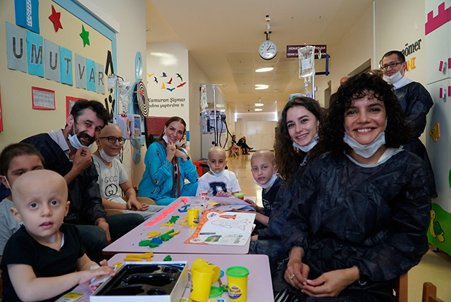 Ziyaret sırasında çocuklarla oyunlar oynayan, tek tek sohbet eden oyuncular, onların tedavi süreçleri ile ilgili detaylı bilgiler aldılar.