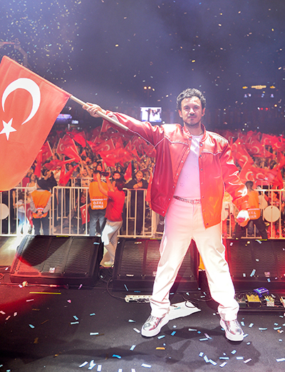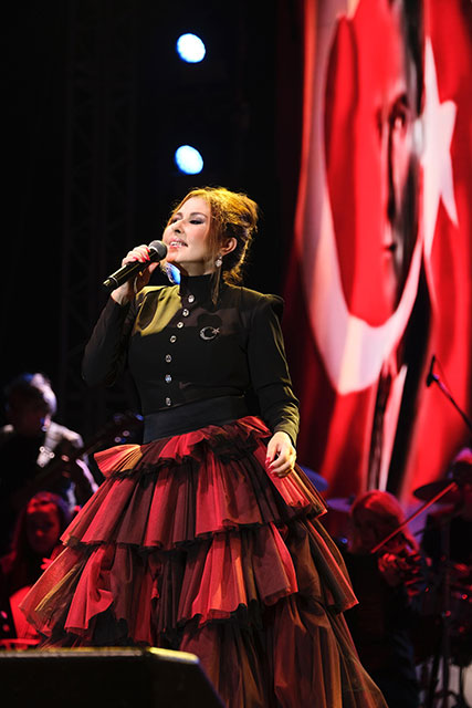 Türkiye Cumhuriyeti'nin 100. yılını gururla kutluyoruz. Büyük önder Gazi Mustafa Kemal Atatürk’ün ayak izleriyle, daha özgür, daha güçlü, huzur dolu yarınlara…” diyerek konser alanı dolduran sevenleriyle birlikte Türk bayrakları eşliğinde Cumhuriyeti Bayramını coşkulu bir şekilde kutladı.