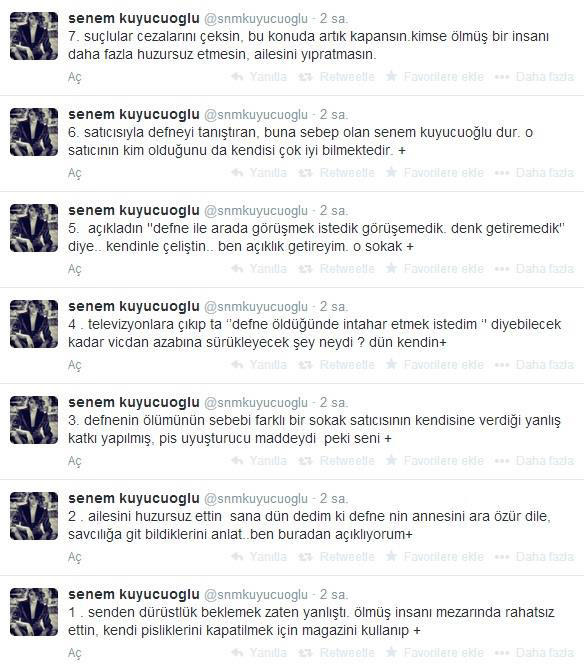 Son zamanların çokça konuşulan mankeni Senem Kuyucuoğlu`nun twitter hesabını hackleyen Mert Ortaç, Defne`ye uyuşturucu verenin Kuyucuoğlu olduğunu iddia etti.