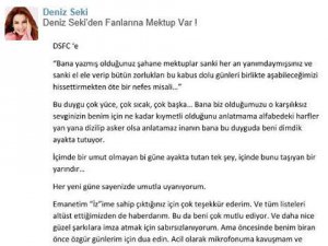 Deniz Seki, mesajları, mektupları ve iyi dilekleriyle kendini bir an olsun yalnız bırakmayan hayranlarına teşekkür mektubu yazdı.