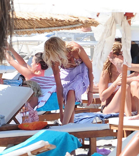 Sosyetenin en güzel hanımlarından Derin Mermerci, plajın ortasında havluya sarılarak bikinisinin altını değiştirirken objektiflere yansıdı