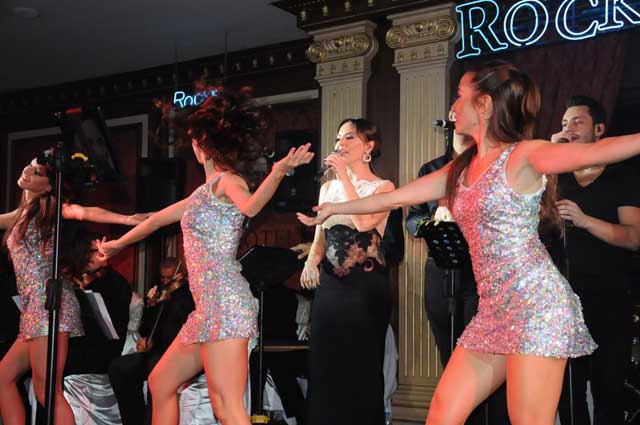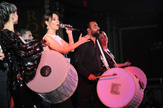 Fenerbahçeli olan ünlü sanatçı sahnede giydiği siyah beyaz işlemeli kıyafeti ile ilgi görürken dansçılarının yaptığı davul şov görülmeye değerdi.