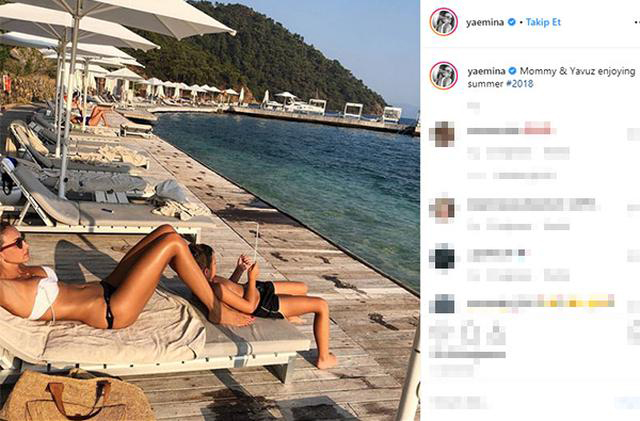 Şarkıcının oğlu Yavuz ile verdiği bikinili pozuna beğeni yağdı.