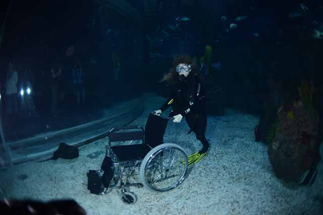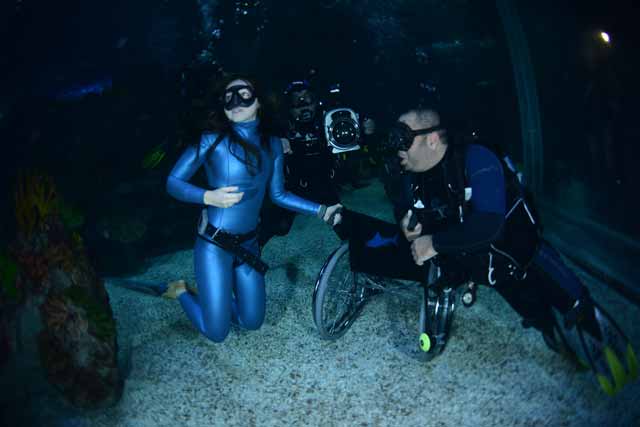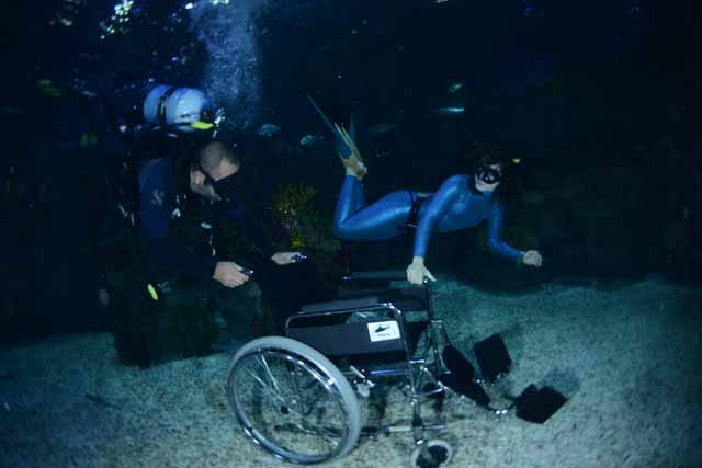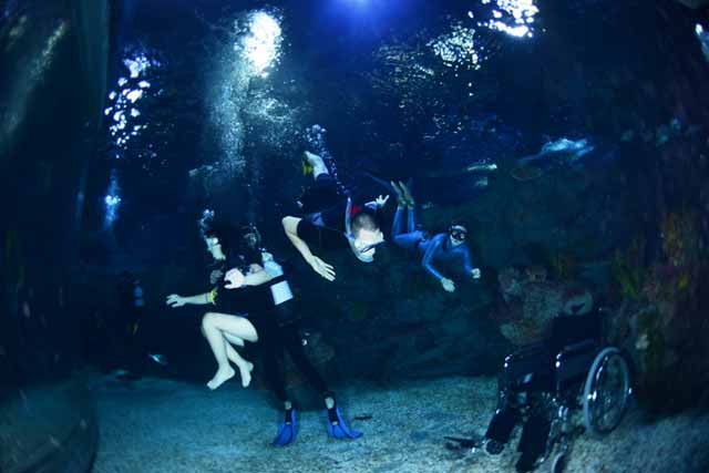 Bedensel engelli milli sporcular, günlük yaşamda karşılaştıkları engellere karşı sandalyelerinden bağımsız özgürce hareket edecekleri bir dünyada, 5,5 milyon litre su ile dolu akvaryumda boyları 2,5 metreyi bulan köpekbalıkları, dev vatozlar ve binlerce balık arasında, Turkuazoo Dalış Merkezi Eğitmenleri eşliğinde tüplü dalış yaparak engelleri ortadan kaldırdılar.