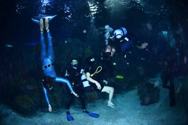 Paralimpik milli sporcular ile dünya serbest dalış rekortmeni denizkızı Şahika Ercümen, Dünya Engelliler günü kapsamında Bayrampaşa'daki dev akvaryum Turkuazoo'da köpekbalıklarıyla