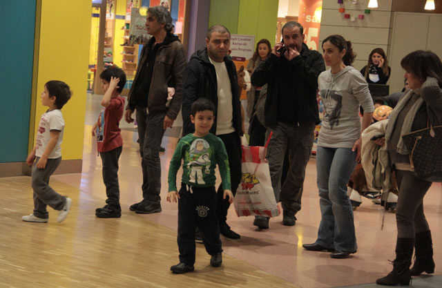 Attığı atışları sayıya çeviren Erdoğan'a oğulları da alkışlarla destek verdi. Oyuncak mağazalarında oğullarının istediği tüm oyuncakları alan Mustafa Erdoğan'a alışveriş merkezinde iki yardımcısı da eşlik etti.