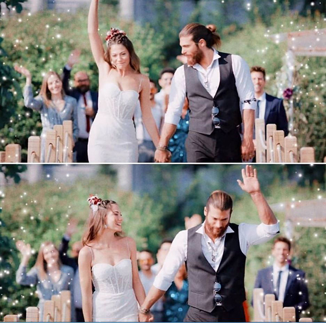 Dizinin sosyal medyaya sızan fotoğraflarından anlaşıldığı kadarıyla Demet Özdemir'in canlandırdığı Sanem karakteri ile Can Yaman'ın hayat verdiği Can'ın evlendiği görülüyor.