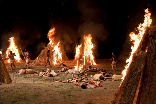 Eşruhumun Eşzamanı Filminin Şaman sahnesi için özel olarak kurulan köy, çekimler sırasında yakıldı... Şaman sahnesi için özel kostümleri içerisinde yüzleri boyanmış oyuncular ateş etrafında dönerken, yüzyıllar öncesinin bu en önemli geleneği son derece başarılı bir şekilde canlandırılmış oldu. Bu sahnenin sonunda köy yakılırken, yangının çevredeki ormanlıklara sıçramaması için sıkı güvenlik önlemleri alındı. 4 adet itfaiye aracı hazırda bekletildi. Dumandan etkilenen oyuncuların bir çoğu bekletilen ambulanslarda tedavi gördü.